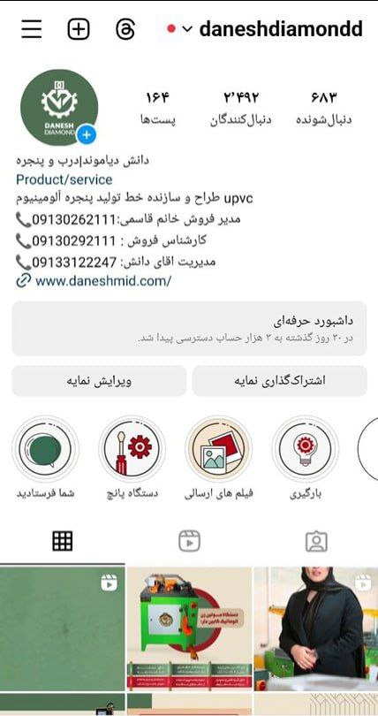 دانش دیاموند، تولیدکننده پیشرو ماشینآلات در و پنجره UPVC، از سال ۱۳۹۸ با تعهد به کیفیت و بهروز بودن فعالیت خود را آغاز کرد. این مجموعه با بهرهگیری از نیروهای متخصص و استفاده از تکنولوژی پیشرفته، انواع دستگاههای پانچ پنوماتیک، زهواربر، جوش تکسر و متر دیجیتال را تولید میکند. با حضور در نمایشگاههای بینالمللی و تمرکز بر توان تولید داخلی، دانش دیاموند تلاش دارد وابستگی صنعت کشور به محصولات خارجی را کاهش دهد و خدماتی ممتاز به مشتریان ارائه نماید.