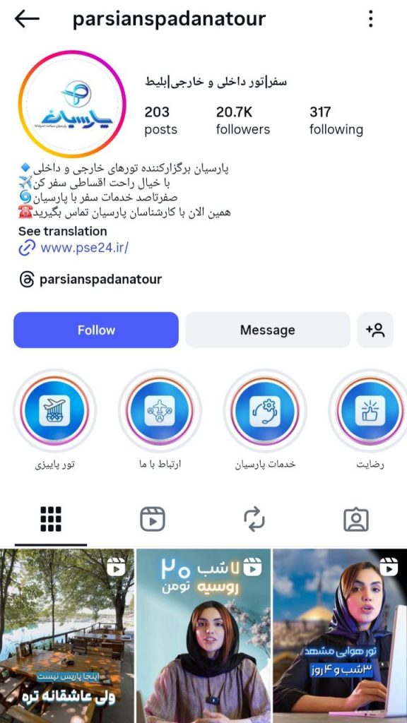 آژانس پارسیان سیاحت اسپادانا از تاریخ ۴ آبان ۱۳۸۴ فعالیت خود را در صنعت گردشگری آغاز کرده و اکنون با بهرهمندی از کادر مجرب، خدمات متنوعی ارائه میدهد؛ از جمله برگزاری تورهای داخلی و خارجی، اخذ ویزا و رزرو هتل، برگزاری مستقیم تور مشهد مقدس، گارانتی هتلها و پروازهای اصفهان–مشهد، صدور بیمه مسافرتی، فروش بلیت هواپیما و قطار و ارائه گواهینامه بینالمللی.