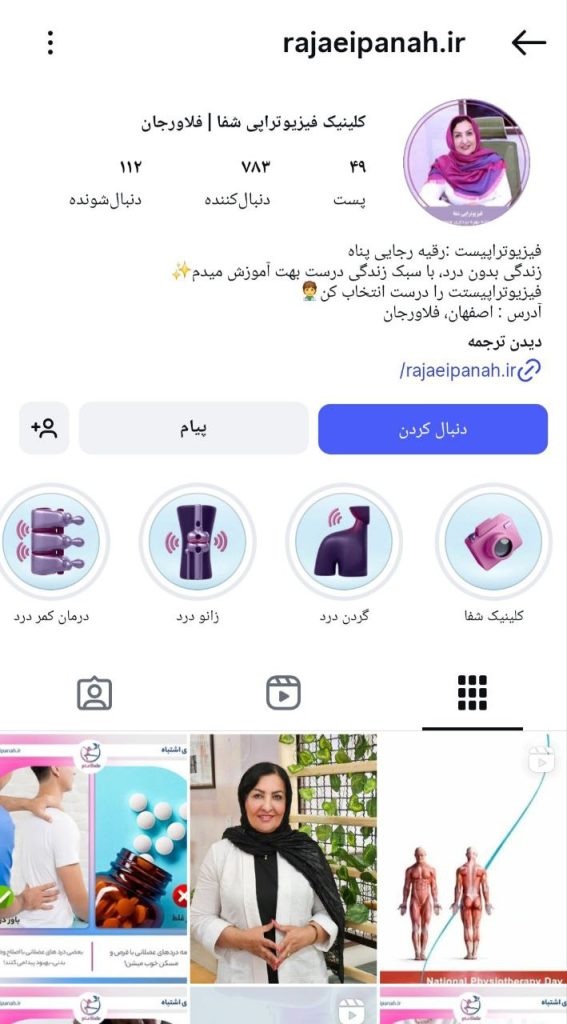 فارغالتحصیل دانشگاه علوم پزشکی اصفهان و دارنده مدرک دکتری حرفهای فیزیوتراپی از NUMSS اسپانیا، متخصص فیزیوتراپی کف لگن در سلامت زنان با تمرکز بر درمان بیاختیاری ادراری و یبوست است. مجهز به دستگاههای بیوفیدبک، لیزر پرتوان و کمتوان، شاکویوتراپی، مگنتتراپی و درای نیدلینگ، خدمات تخصصی ارائه میدهد.